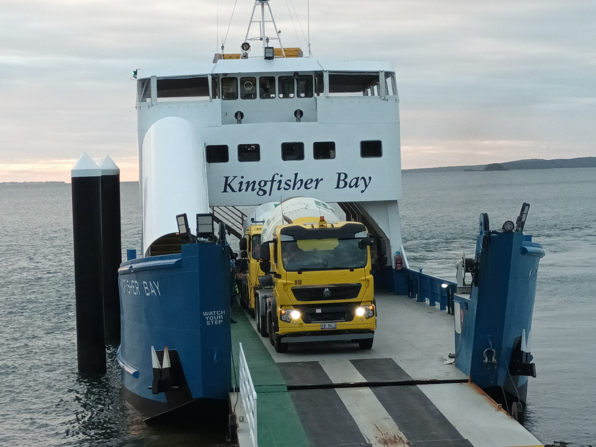 A barge was required to get the agis to the island. But there were added complications, as the job demanded two trucks on day one and four on day two, with staggered discharge times stretching across several hours.