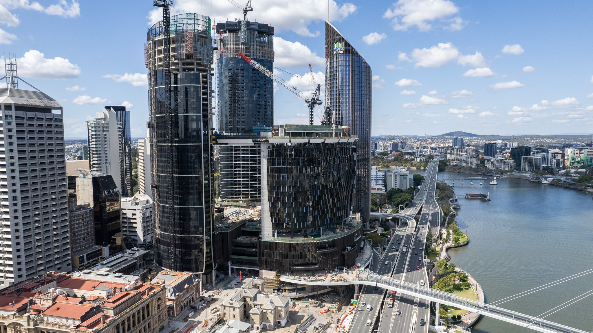 The project was awarded to our client, Destination Brisbane Consortium, in 2015 and the development includes the construction of four high-rise buildings, and the delivery of the Neville Bonner Bridge, connecting the CBD to Southbank for pedestrians. In addition, the project includes the redevelopment of the northern river foreshore, delivering up to 2,000 apartments, around 1,000 hotel rooms, a replacement casino and the Sky Deck observation platform.
